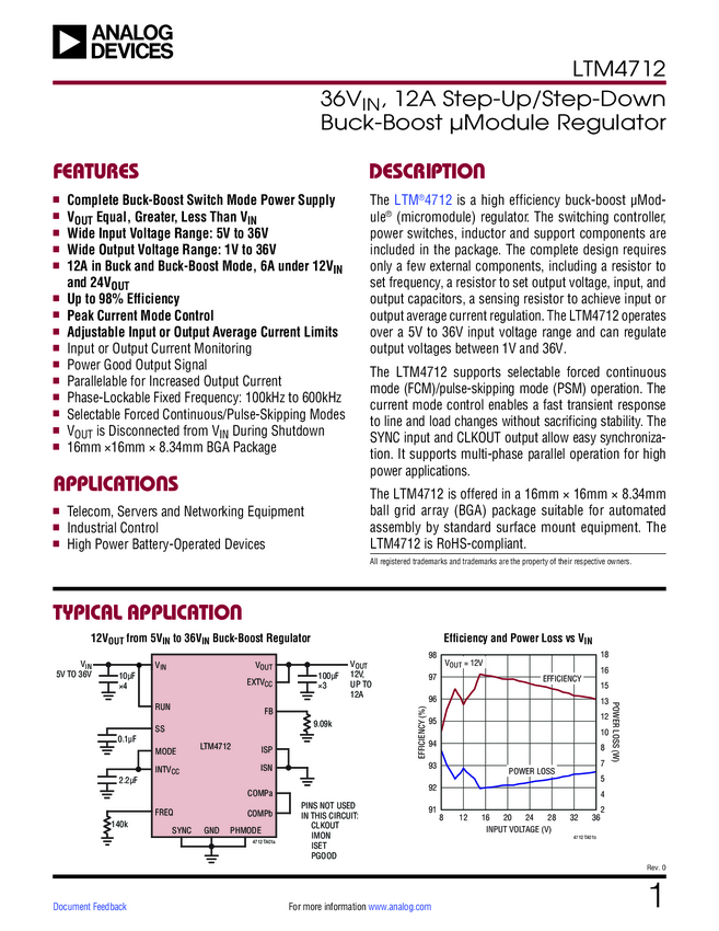 LTM4712 36V, 12A Step-Up/Step-Down Buck-Boost μModule Regulator