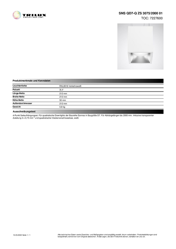 7227600 Trilux 7227600 Zestaw do zawieszania lin SNS QD7-Q 1 szt.