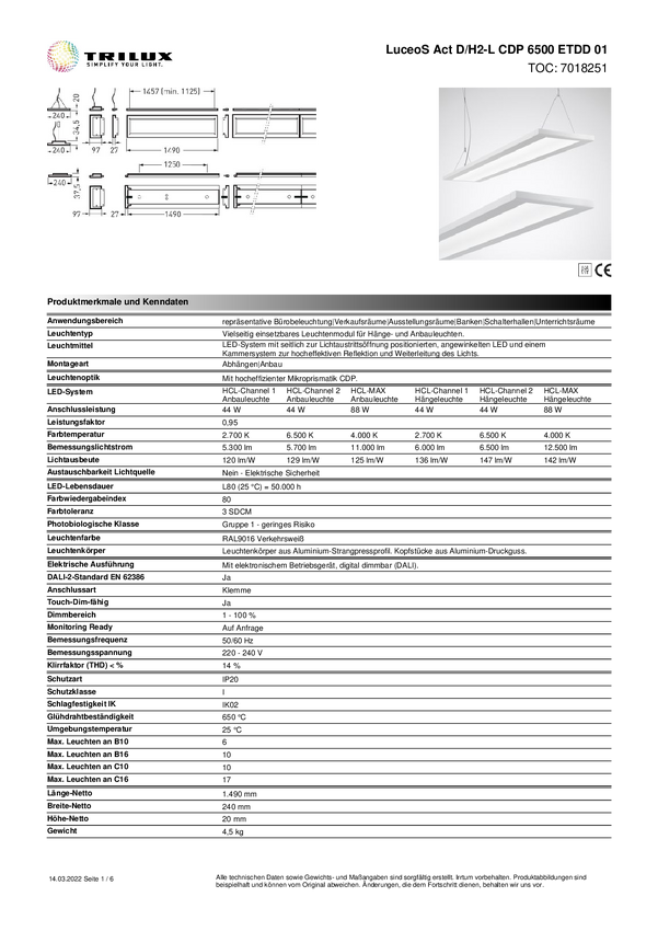 7018251 Lampa podwieszana LED Trilux LuceoS Act #7018251 7018251 brak 44 W biały