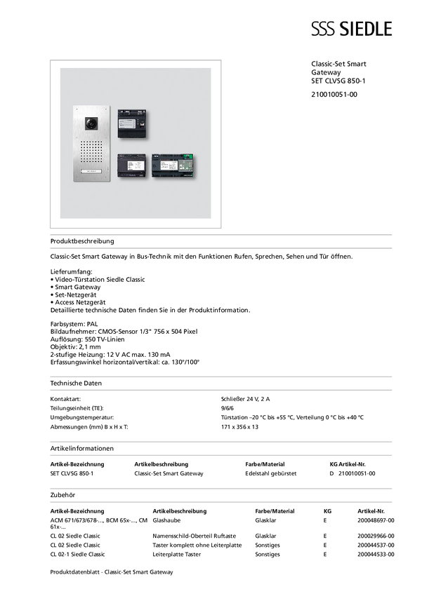 210010051-00 Siedle SET CLVSG 850-1 Domofon srebrny