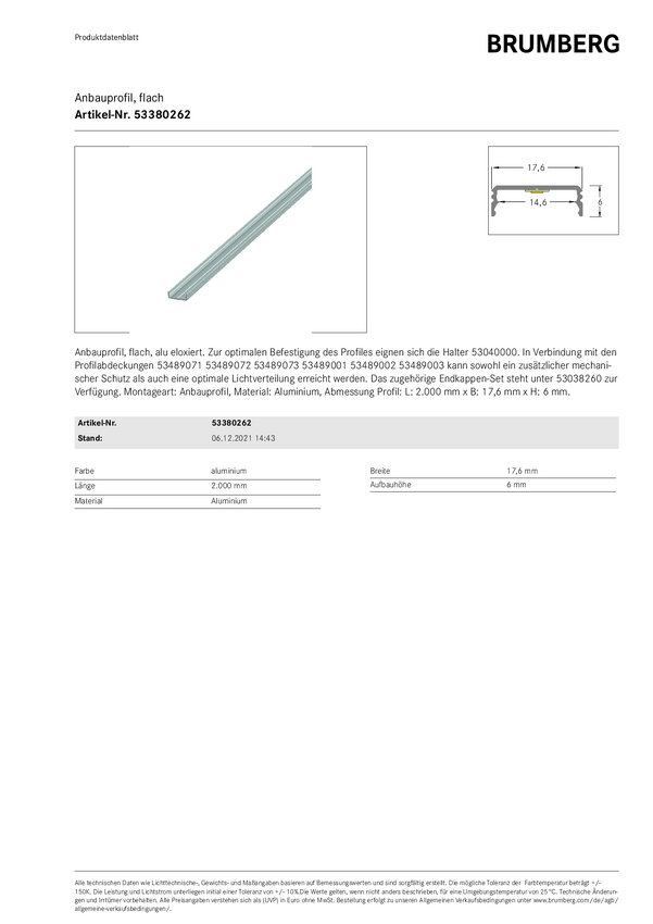 53380262 Brumberg 53380262 Anbauprofil Brumberg Leuchten 1 szt.