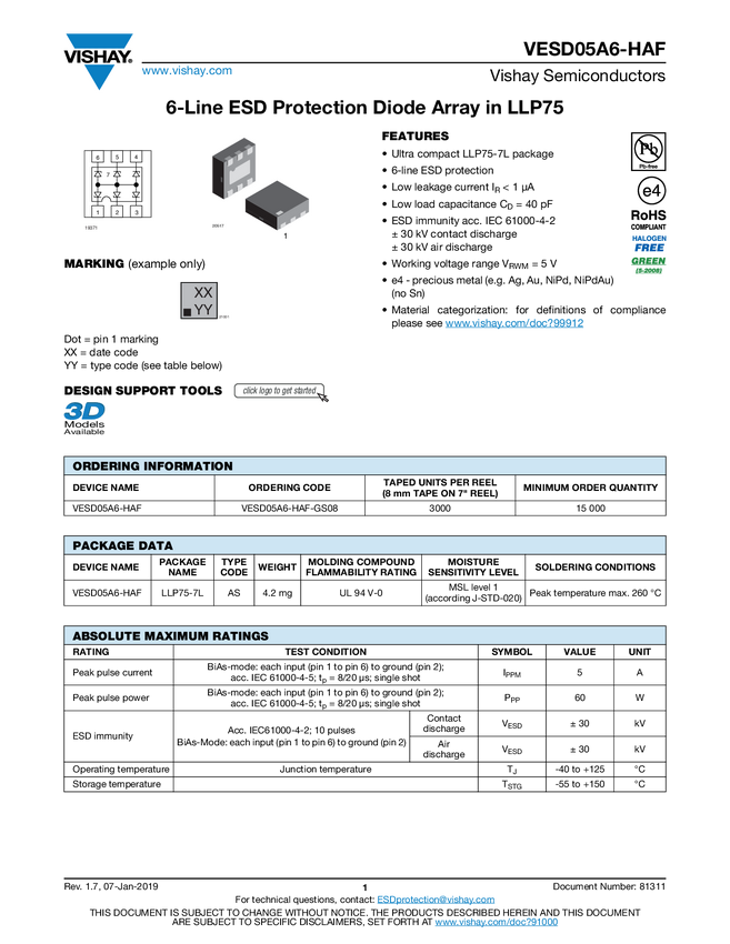 VESD05A6-HAF 6-Line ESD Protection Diode Array in LLP75