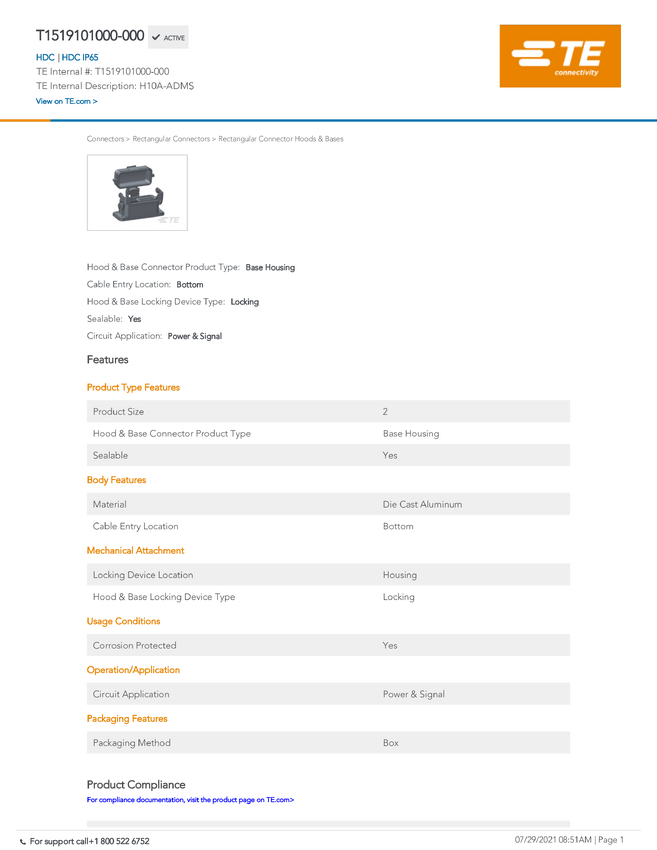 T1519101000-000 TE Connectivity T1519101000-000 TE AMP HEAVY DUTY RECT SIBAS, 1 szt.