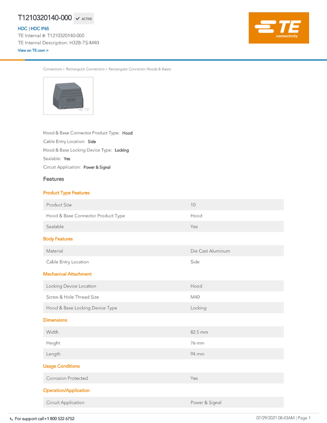 T1210320140-000 TE Connectivity TE AMP HEAVY DUTY RECT SIBAS T1210320140-000, 1x -020500071...