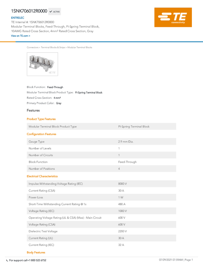 TE Connectivity 1SNK706012R0000 TE TAB SNK Automation, 1 szt.