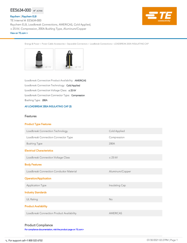 EE5634-000 TE Connectivity TE TEE Switchgear Connection System EE5634-000, 1 szt.