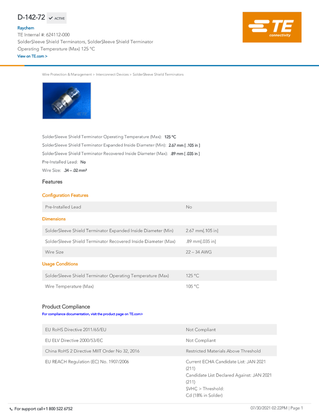 624112-000 TE Connectivity TE RAY Solder Sleeves 624112-000, 1 szt.
