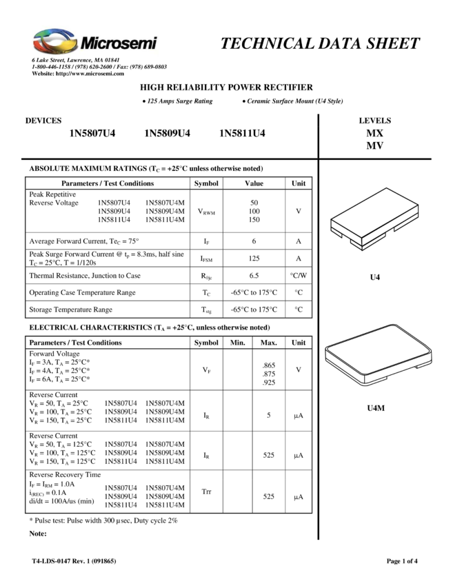 1N3889, MV1N5807U4, MV1N5809U4, MV1N5811U4, MX1N5807U4, MX1N5809U4, MX1N5811U4