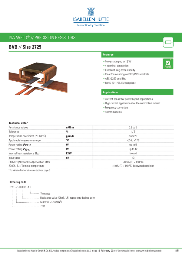 BVB-I-R002-1 Isabellenhütte BVB-I-R002-1 BVB-I-R002-1 Rezystor SMD 2 mΩ SMD 2725 6 W 1 %...