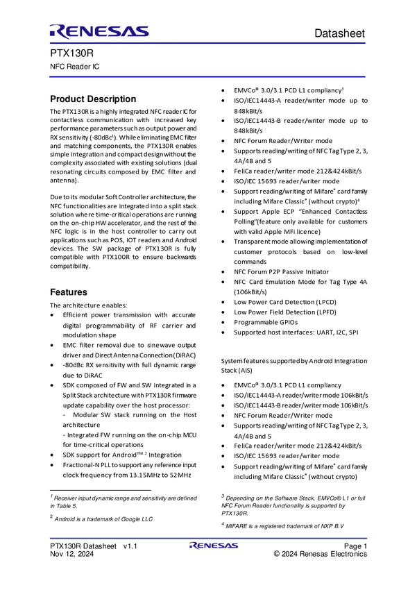 PTX130R High Performance NFC Reader for Android™ based Devices and High-end NFC App...