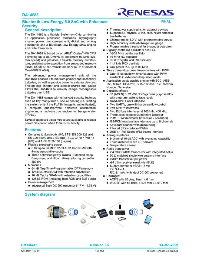 DA14683 SmartBond Bluetooth Low Energy 5.0 SoC with Enhanced Security