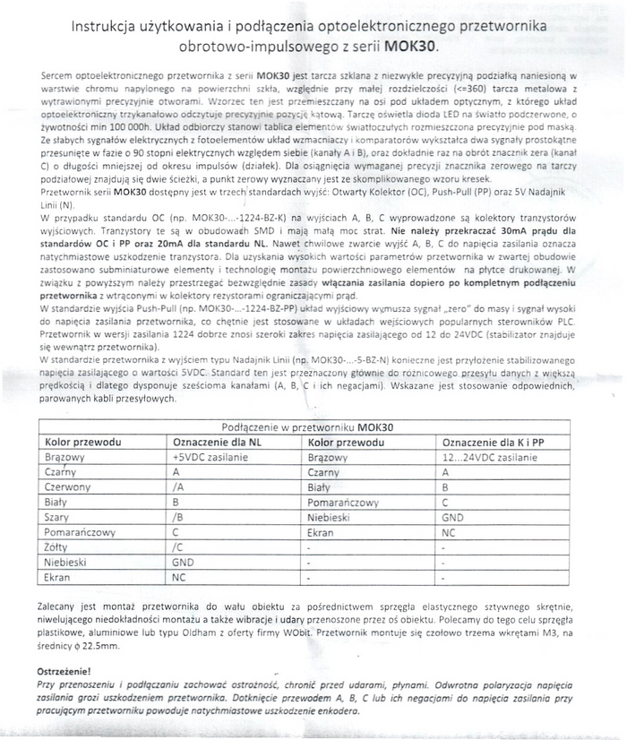 Enkoder optyczny śr.30mm oś śr.4mm/11mm rozdzielczość cpr zasilanie 12-24V; wyścia ABC typu OC; IP50 Opisy, karty katalogowe, ceny na zapytanie MOK30-1000-1224-BZ-PP