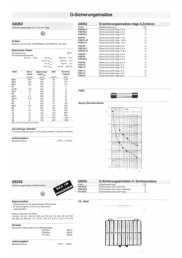 FSBT00,2 Bezpiecznik 6,3x32 zwloczny 0,2 A Pakowane w pudełeczkach po 10 sztuk