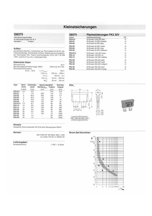 BEZPIECZNIK-SAMOCHODOWYFK bezpiecznik nozowy 32V typ FK2 19 mm x 7.3 mm x 3.8 mm konektory