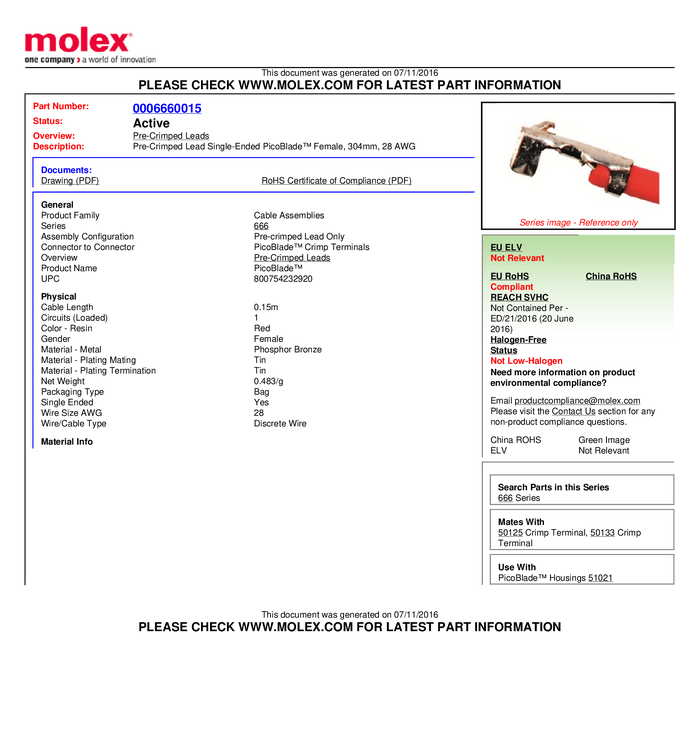 ZŁĄCZE CN1MOLEX0006660015 patrz Kabelki z pinami do złacza 51021-0500 do przetwornicy cxa-l0605.. i c...