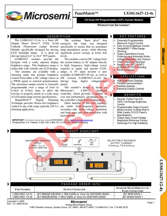 CCFL-CXA LXMG1627-12-42 złącze BHSR-02vs1 Yeon Ho 35001wr-02A00
