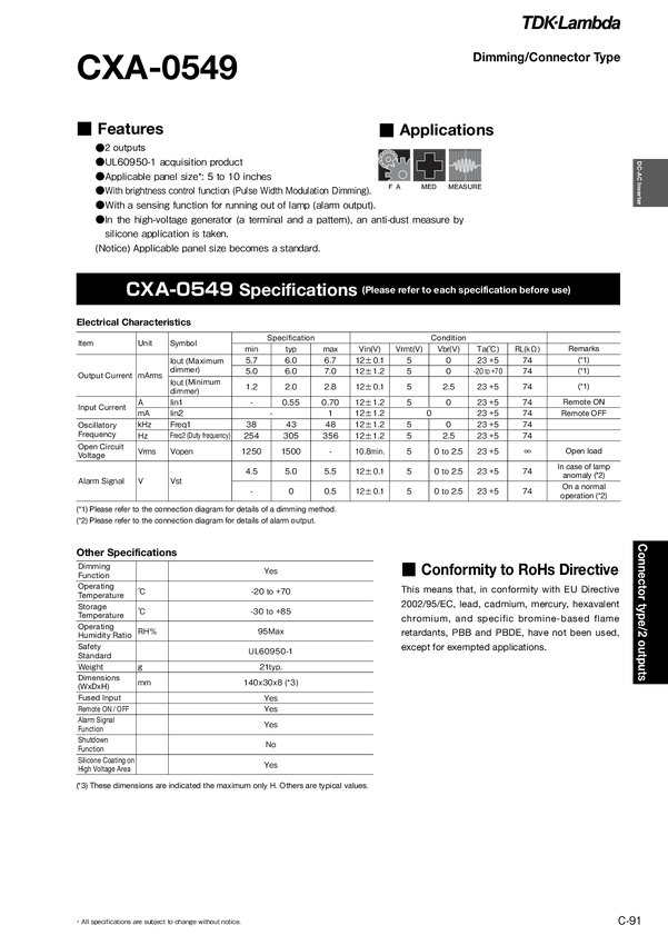 CCFL-CXA-0549 Przetwornica DC/AC- Inverter dla 2 lamp 43 khz 9 pin Vin 12 V DC (10,8-13,2...
