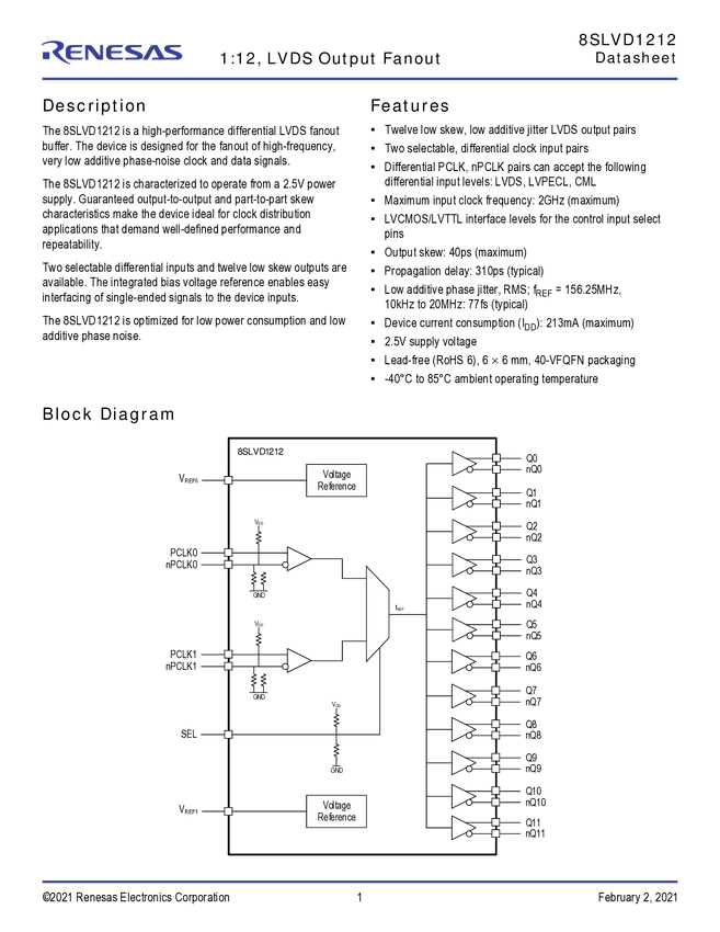 8SLVD1212 1:12, LVDS Output Fanout Buffer