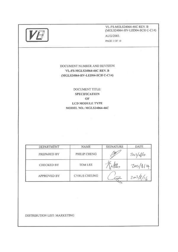 5,2" Wyświetlacz graficzny 240 x 64 wym 180 x 65 view 132 x 39 mm MGLS24064Z-02; MGLS-24064Z-HV-G-LED4G; Date 20110518