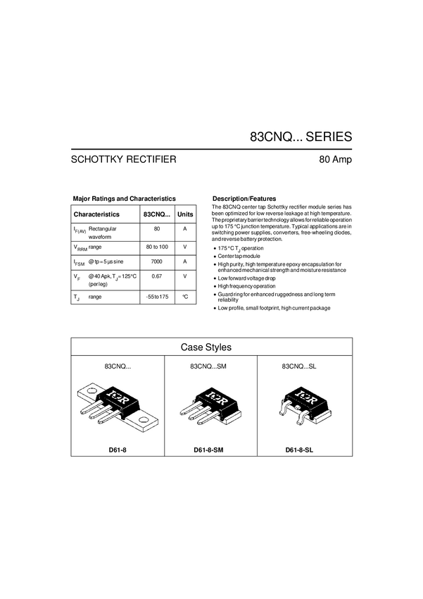 83CNQ100A DIODA PODWOJNA SCHOTTKY 60A,100V,IOR, A1-CC-A2