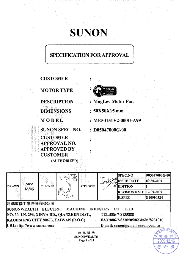 KDE1205 ME50151V2-A99 Wentylator 50 x 50 x 15mm, 12VDC, VAPO, 27,3m3/h, 36dBA