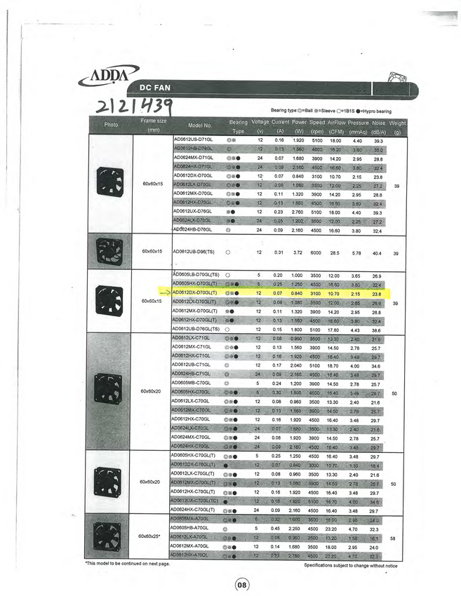 KDE1206 AD0612DX-D70GL(T) 60x60x15mm 12V DC 0,07A 0,84W 23,8dBA Hypro Brushless kabelek ok. 12 cm; wy...