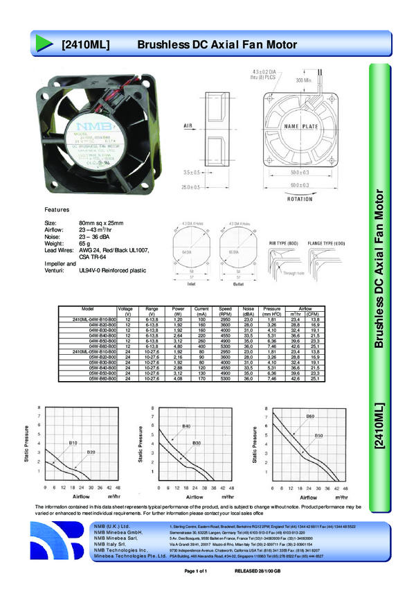 KDE2406 2410ML-05W-B30E00 Wentylator 60 x 60 x25 mm, 24V DC 80 mA, z kabelkami 31dBA; min. 10V, max....