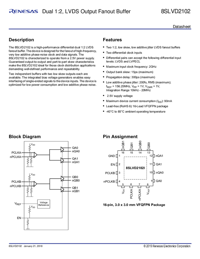 8SLVD2102I Dual 1:2, LVDS Output Fanout Buffer