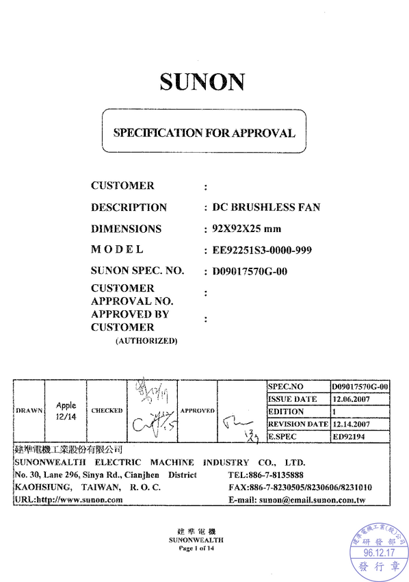 KDE1209 EE92251S3-999 WENTYLATOR 12V 92X25 Noice 28dBA; prędkość obrotowa 2400 RPM; moc 1,30W; I=...