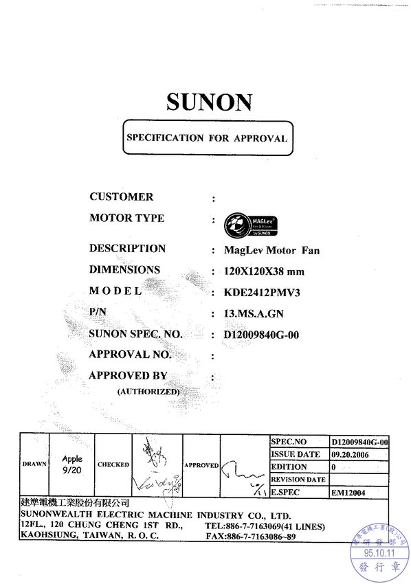 KDE2412PMV3-13A Wentylator 24V DC 120x38mm łóżysko Vapo 191,9m3/h 43dBA 24V DC ( 8-27,6V DC...