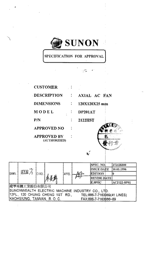 DP201AT2122HST Wentylator 120 x 120 x 25 mm, kulka