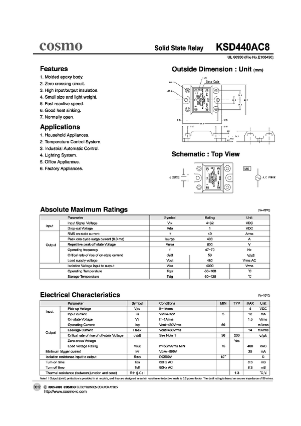 KSD440AC8 Przekażnik elektroniczny ; Zero cross; obudowa Hock; 40 A sterowanie 4-32 V...