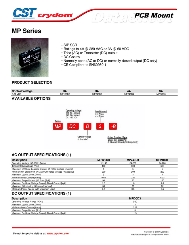MP240D4 CRYDOM Przekaźnik Z-wersion, 280V 3A SIP4; sterowanie DC 3-32V