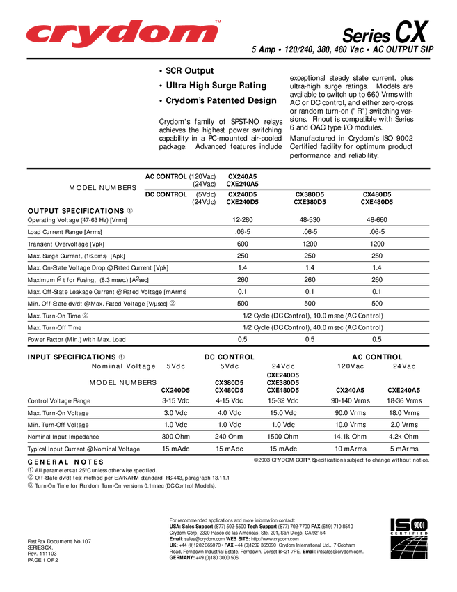 CX240A5 CRYDOM, CX240D5 CRYDOM, CX480D5 CRYDOM, CX240A5-MS11 CRYDOM, CX240D5-MS11 CRYDOM