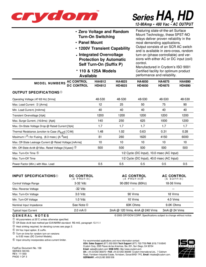HD48 CRYDOM, HD4825 CRYDOM, HD4825-10 CRYDOM, HD4850-10 CRYDOM, HD4890 CRYDOM