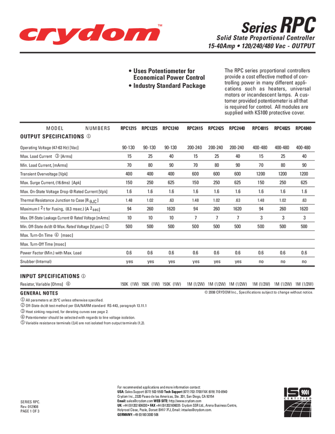RPC4840 CRYDOM proportional controller. Proportional controller - 0-1 potentiometer ; 0,9-...