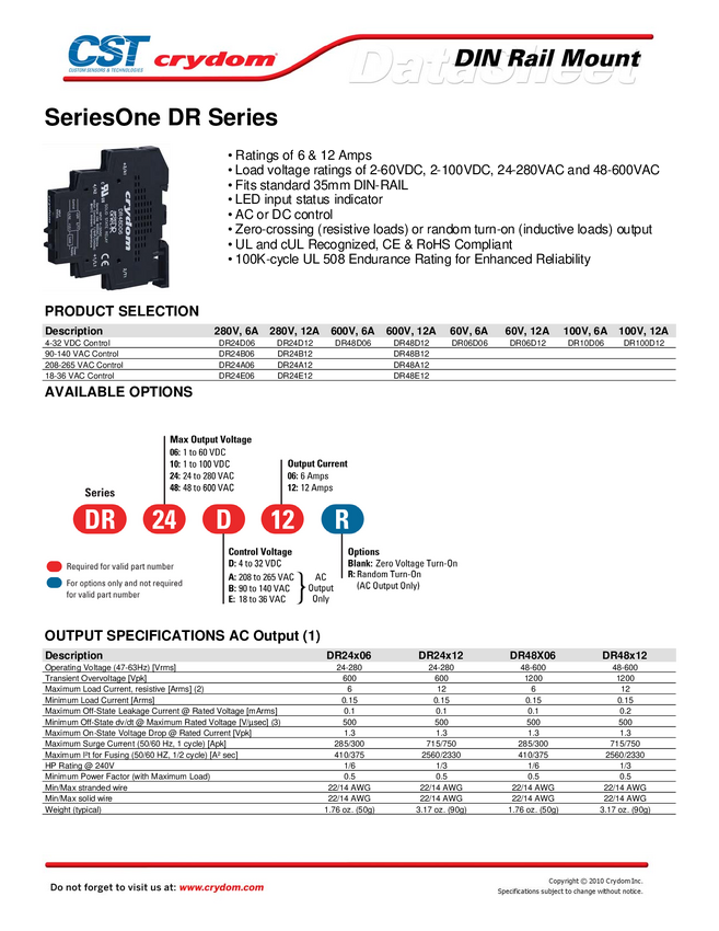 DR06D12 CRYDOM Przekaźnik elektroniczny wyjście Mosfet DC 60V 12A Szyna DIN