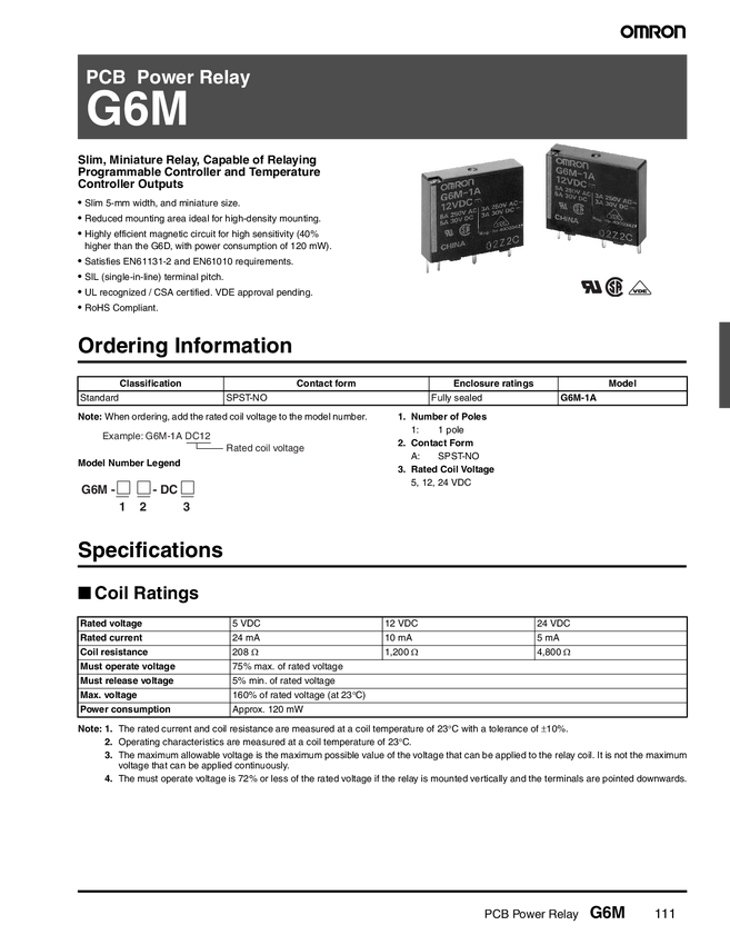 G6M1A-5 Przekaźnik OMRON PCB, SPST-NO, prąd znamion 3A, seria G6M obudowa 20,3x5,08...