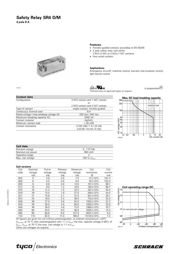 SR4D4024 Przekaźnik TYCO/SCHRACK prąd znam 8A, seria SR4, obudowa 40x13x16mm; 24V 2x...