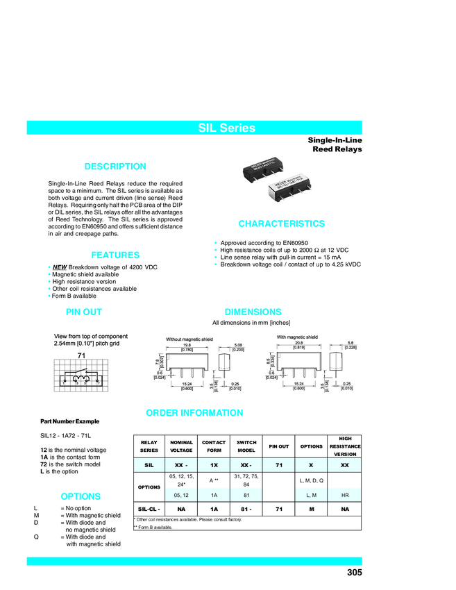 Przekaźnik MEDER SIL; b/diody; SPST-NO; SIA_; obudowa SIL07 SPST 5V 500R