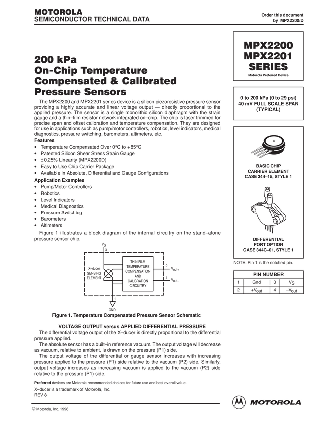 MPX2200DP 0-200kPa Differential Dual port - Różnicowy skompensowany temperaturowo/ska...
