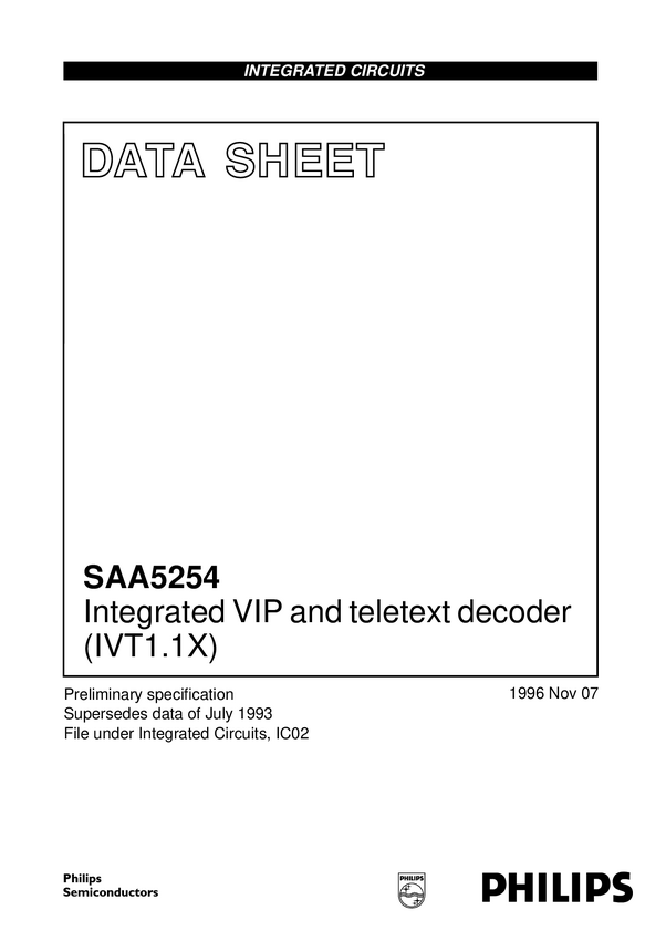SAA5254P/E Integreated VIP and Teletext decoder; DIP40 West European standard