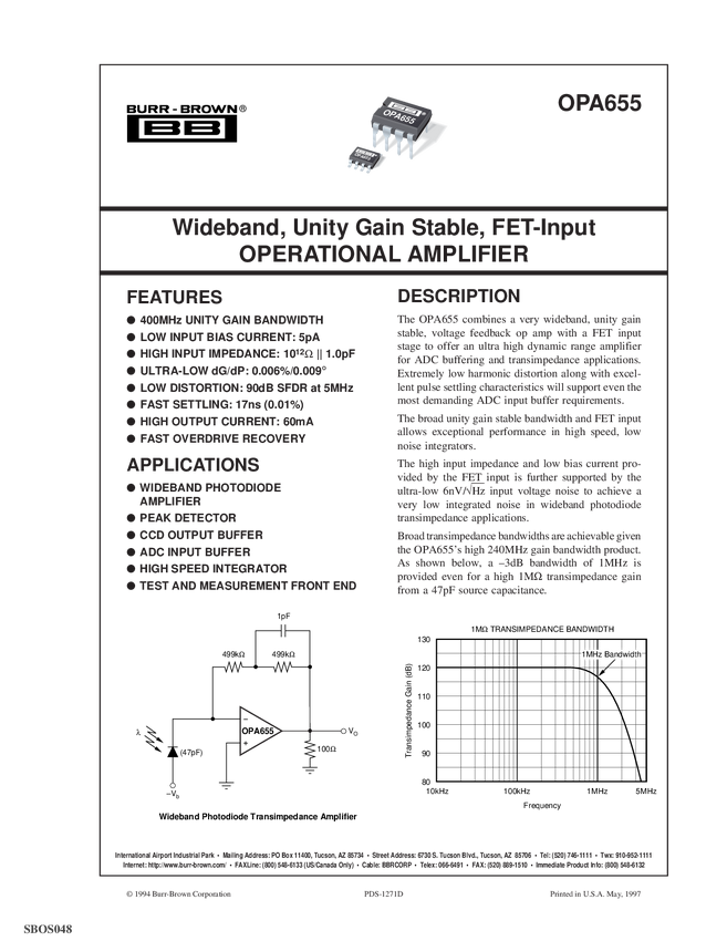 OPA655U WIDEBAND FET-INPUT OP AMP DIP8