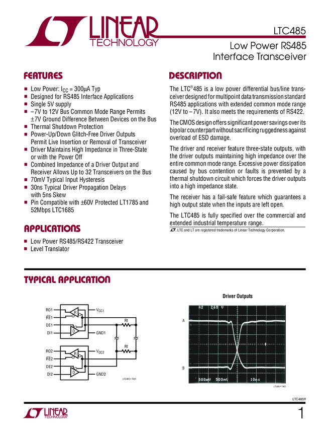 LTC485CN8 Low Power RS485 Tx/Rx SO8