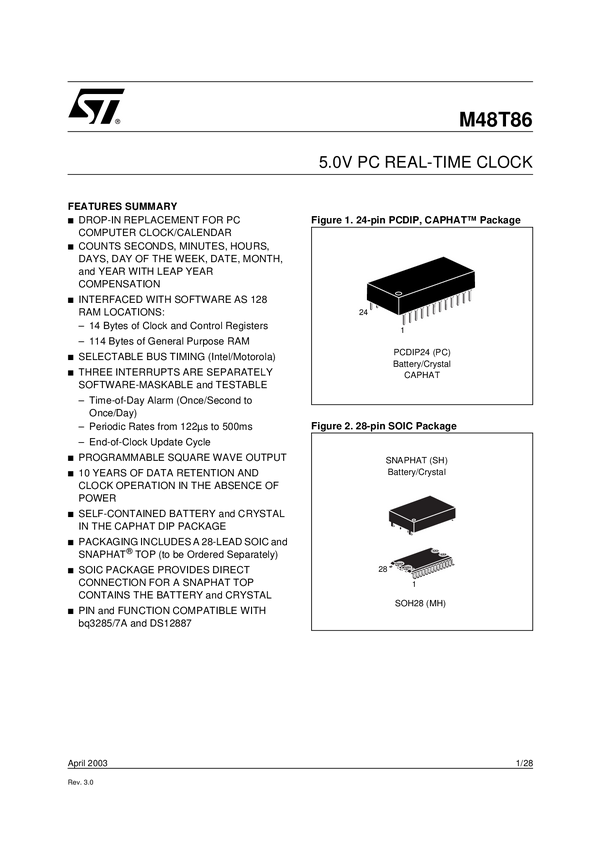 M48T86PC1 Nieprodukowane brak ścisłego zamiennika, Układy pin & function compatible:...