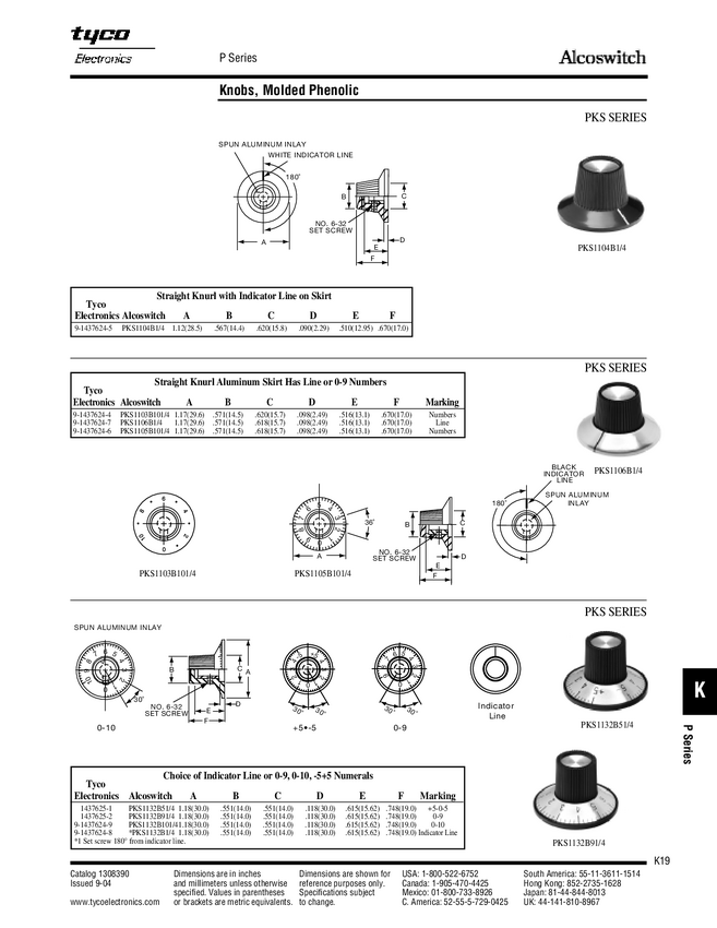 Gałka plastykowa ze skalą 0-10 śr. 29,6/14,5 wys 17 mm przystosowana do ośki 1/4" produkcja TYCO / Alcoswitch klucz imbusowy 1/16" sprzedawany jest oddzielnie