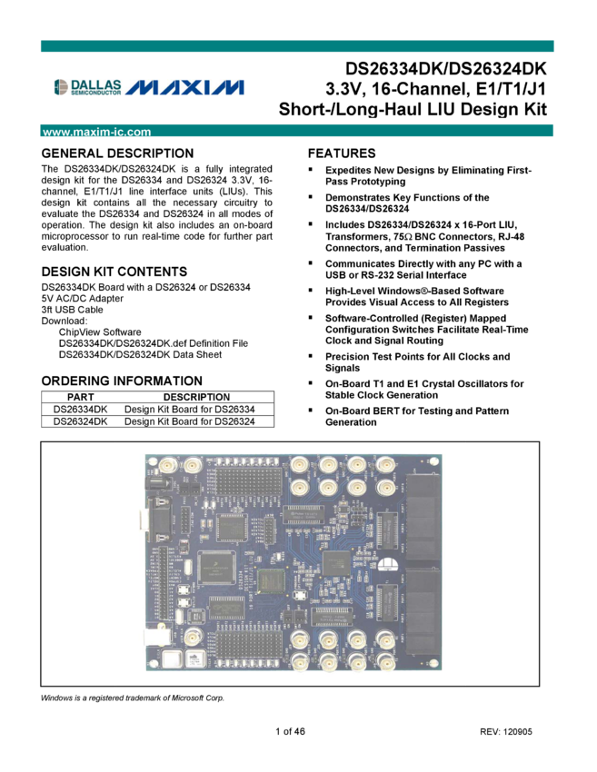 DS26324DK DS26324DK, DS26334DK 3.3V, 16-Channel, E1/T1/J1 Short-/Long-Haul LIU Design...
