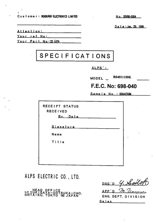 Potencjometr suwakowy ALPS Travel 45 mm, wym. 60 x 8 x 7 mm; śruby 56mm, wodzik metalowy 20 mm typ 4 L1=20mm; rezystancja 50 kohm, charakterystyka B - linowa; potencjomet r sprowadzany na zamówienie - minimum 10 sztuk RS4511150k