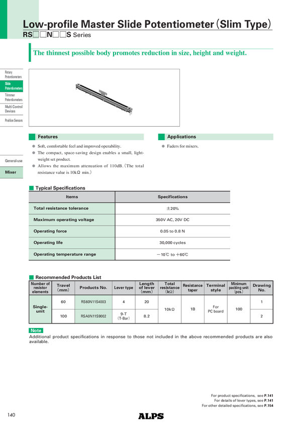 PMRSA0N11S9002-ALPS Potencjometr suwakowy Alps, travel 100 mm, linear; single wymiary: długość:...