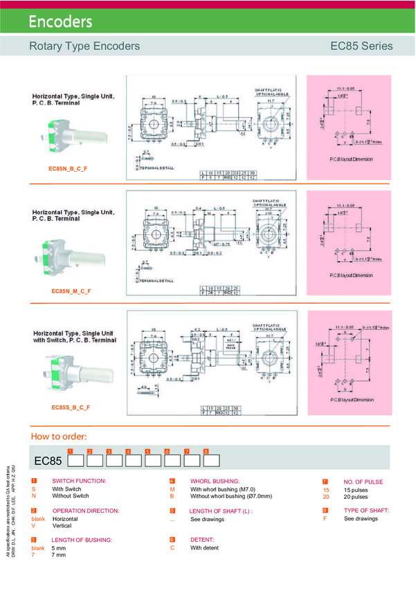 PMEC11 EC85SM15C20F Enkoder stykowy 20 imp./obrót gwint ( Bushing) M7.0 L=15mm ze Switchem; ośk...